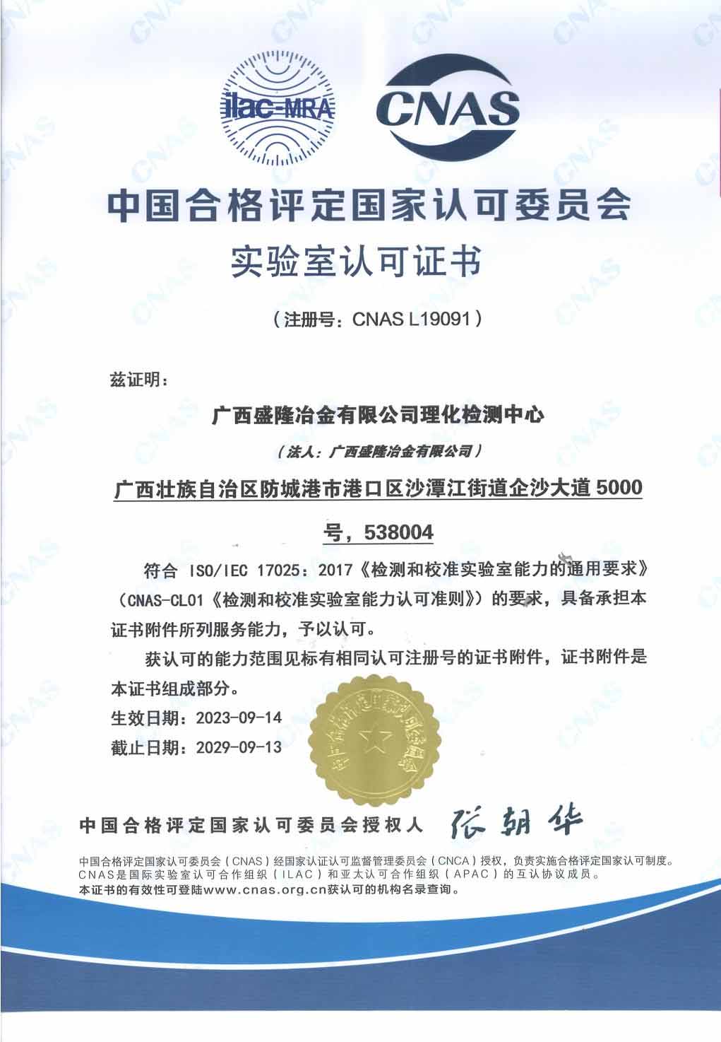 实验室认可证书